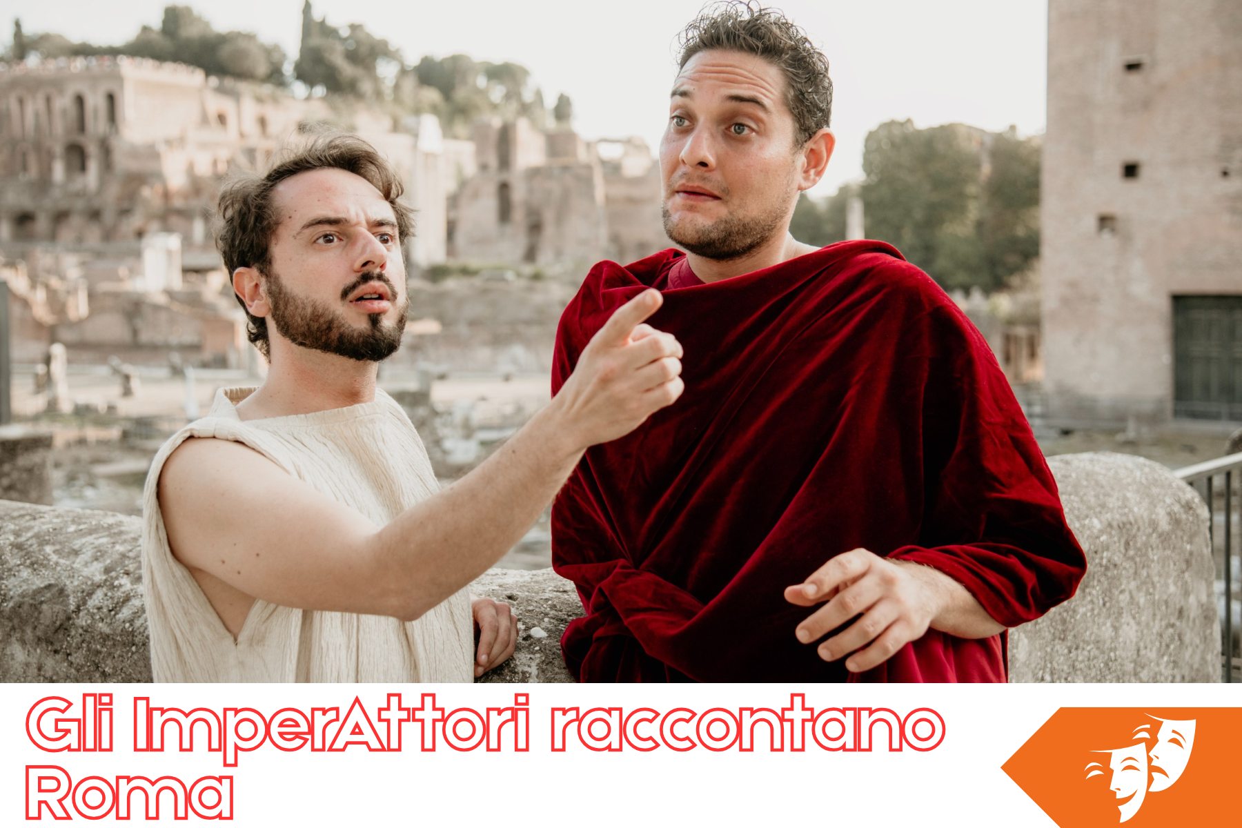 Uno spettacolo teatrale direttamente a scuola con un archeologo e due attori professionisti che interpretano i grandi protagonisti della Repubblica e dell’Impero romano: da Bruto a Giulio Cesare, da Augusto a Nerone, fino a Domiziano e Traiano.